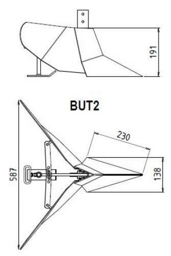 Verstelbaar, 3 werkbreedtes: 34/44/54 cm.Locatie voor bevestiging van de stang met 2 schroeven (stang niet meegeleverd).Verstelbare hiel.